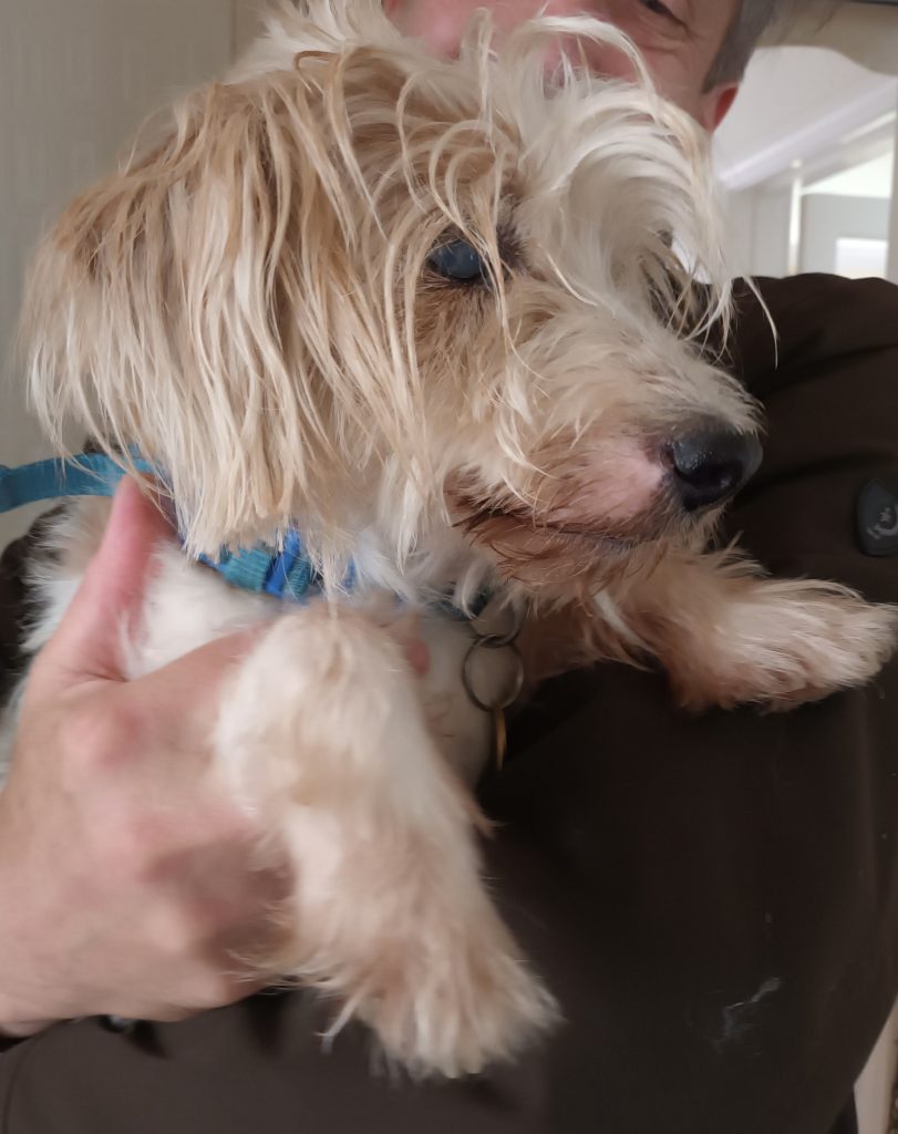 Hi from me – Harry. Very pleased to be one of Aireworth’s long term foster pooches. I am one special little fella -I enjoy a comfy sofa and good food and my walks, though I do have some issues and I need to do things in my time and at my level or I can be a bit snappy. I needed a very patient and committed foster Dad -thank goodness the team found me one and helped with some advice to manage my little quirks and foibles. Thank you so much guys